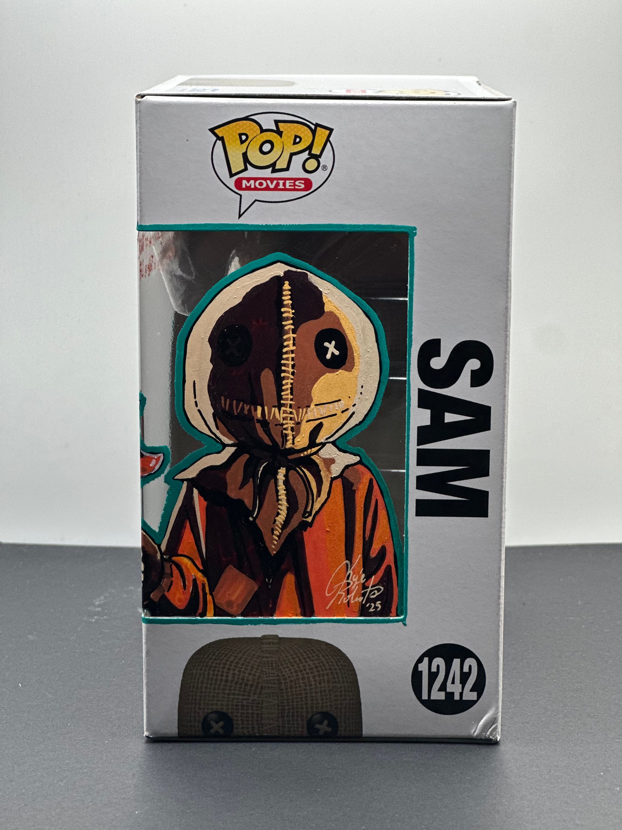 Sam (#1242) Funko Pop with custom art painted onto the box by artist Kyle Roberts. Artwork was done with water based acrylic paint markers. Comes with a pop protector.